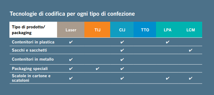 - Si tratta di soluzioni di stampa senza contatto che consentono di stampare codici in qualsiasi punto del packaging.