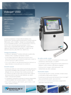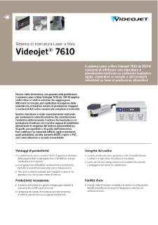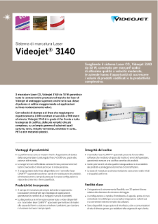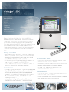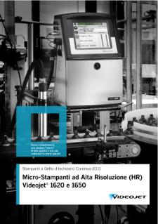 Ti ringraziamo per l’interesse manifestato nei confronti dei nostri prodotti. Scarica la documentazione delle diverse Tecnologie e Stampanti Industriali Getto d’Inchiostro Continuo (CIJ) Scheda tecnica 1550 Scheda tecnica 1650 Micro-Stampanti ad Alta Risoluzione (HR) Videojet® 1620 e 1650 Scheda tecnica 1710 Brochure su Videojet 1860 Scheda tecnica 3140 Scheda tecnica Videojet 3340 Scheda tecnica Videojet 3640 Scheda tecnica Videojet 7220/7320 Scheda tecnica Videojet 7510 Scheda tecnica Videojet 7610 Scheda tecnica Videojet 7810 Gamma di marcatori CO2 e a fibra Scheda tecnica Videojet 8610 Wolke m600 oem Scheda tecnica 8510/m600 Scheda tecnica 6320 Scheda tecnica 6420 Brochure sulla linea di prodotti DataFlex Scheda tecnica della Serie 2300 Scheda Tecnica Videojet 9550 (Direct ApplyTM) Brochure sulla nostra competenza in materia di inchiostri e fluidi L’adempimento dei requisiti normativi e la protezione di importanti marchi di cosmesi Guida alla scelta del ribbon I vantaggi della marcatura laser per i settori della Cosmesi, del Personal e Home Care Guida dei prodotti e servizi Torna all’Hub