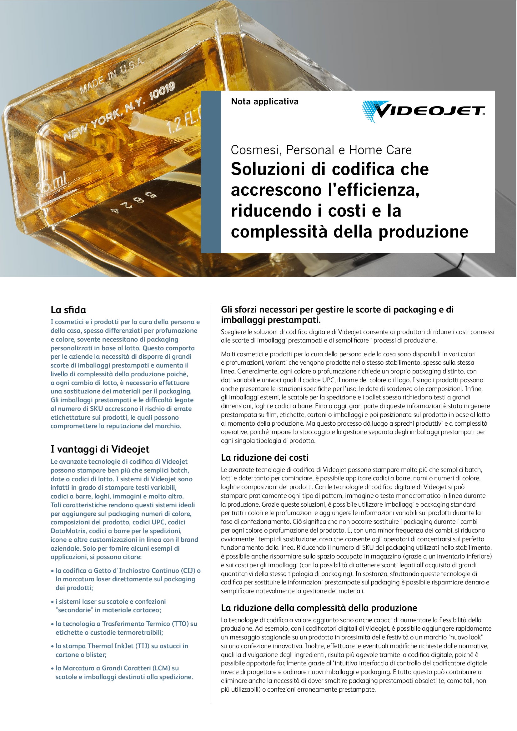 Le soluzioni Videojet sono adatte a numerose applicazioni nel settore cosmetico:
