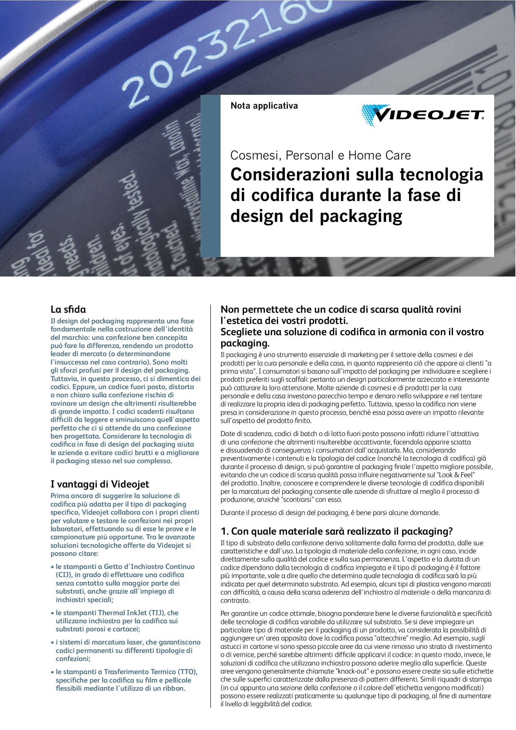 La codifica non deve andare a impattare negativamente sullo stile di una confezione perfetta: a questo scopo, è utile riflettere sulla codifica durante il processo di progettazione e infine scegliere la tecnologia di codifica ottimale per il proprio imballaggio specifico.