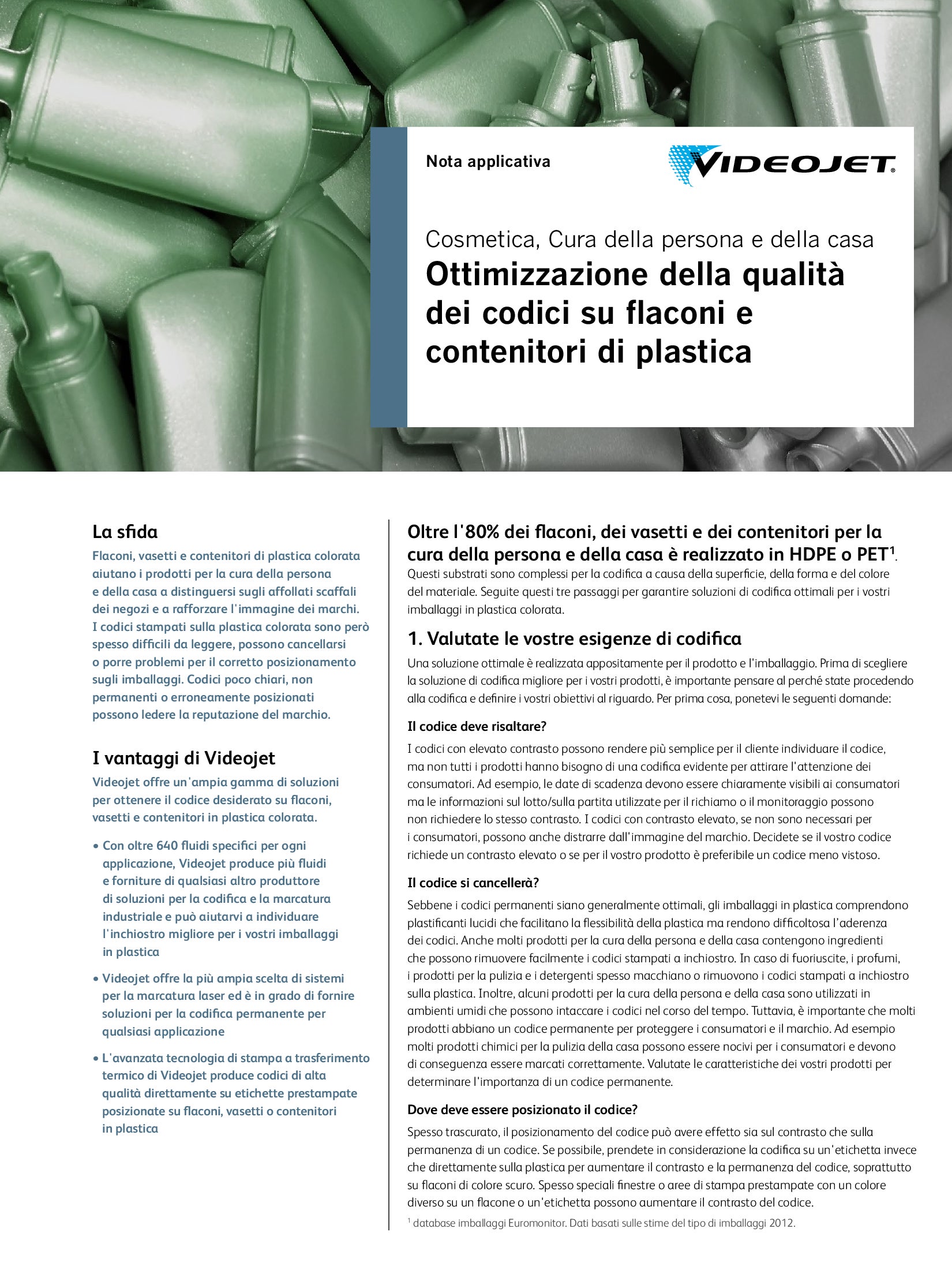 Gli imballaggi in plastica contengono plastificanti scivolosi che agevolano la flessibilità della plastica ma rendono difficoltosa l’aderenza dei codici. Perciò è necessario tenere in considerazione i requisiti di resilienza e il contrasto del codice, oltre ad avere a disposizione dei campioni di prodotto, prima di determinare la tecnologia di codifica ottimale per il proprio imballaggio.