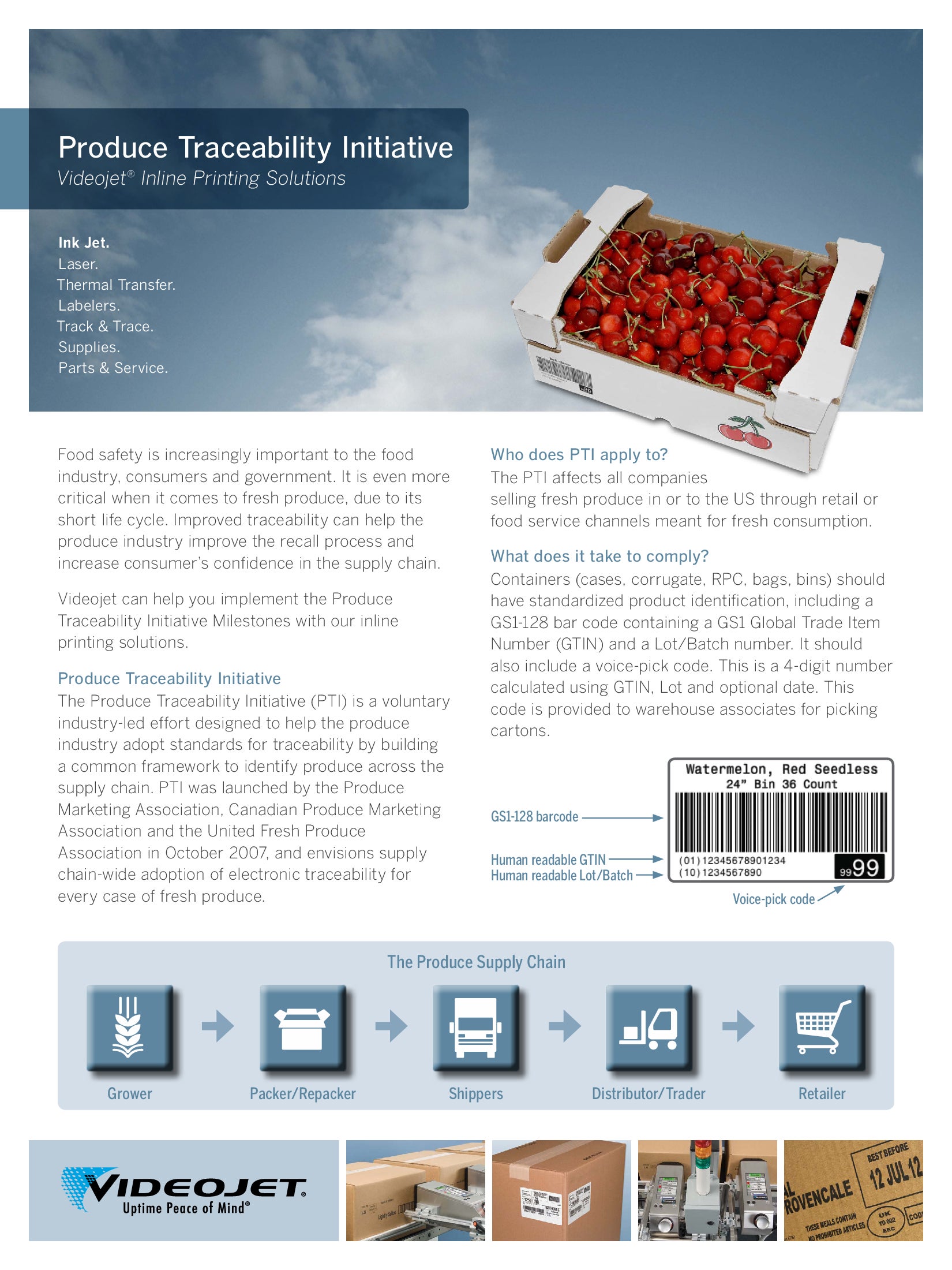 Videojet ti aiuta a integrare le soluzioni di tracciabilità, inclusi i passaggi della Produce Traceability Initiative (PTI), con le nostre soluzioni di stampa in linea degli imballaggi: