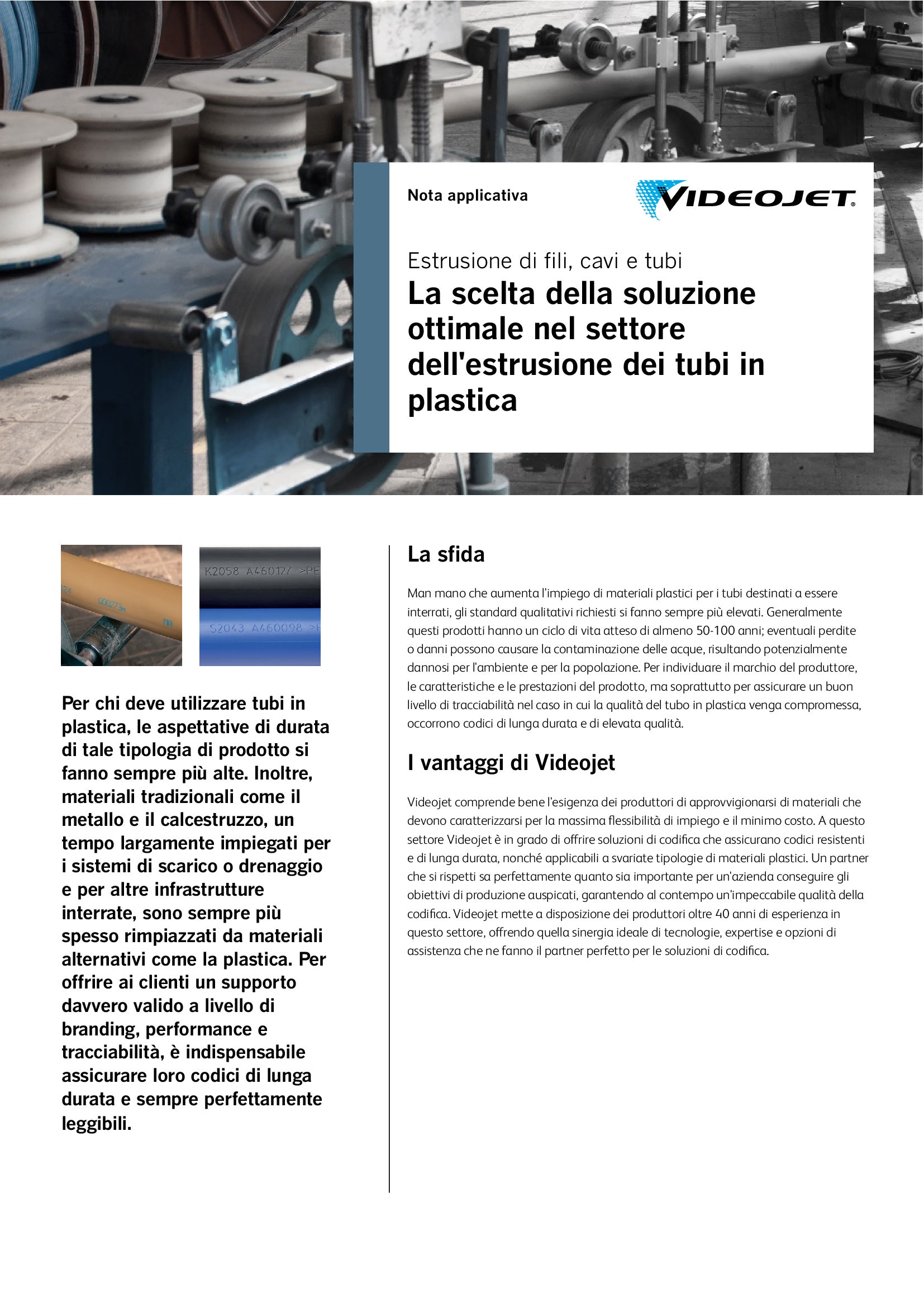 Inoltre, sono disponibili servizi di manutenzione flessibile e assistenza dedicata, con opzioni di monitoraggio remoto, piani personalizzati e supporto rapido per ridurre al minimo i tempi di fermo macchina. Videojet offre anche programmi di assistenza su misura per massimizzare l’efficienza e garantire il corretto funzionamento delle stampanti nel lungo periodo. L’obiettivo è garantire continuità operativa e risultati professionali su ogni tipo di cavo o tubo.