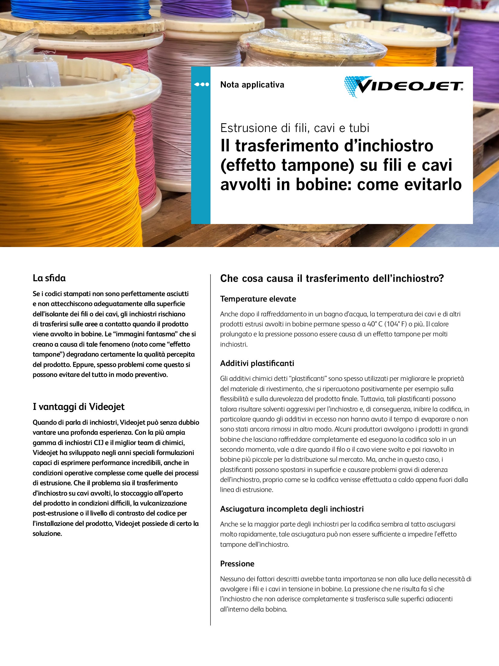 La qualità della marcatura dei cavi elettrici è oggi un requisito tecnico richiesto da normative internazionali e dalla necessità di garantire l’identificazione anche in condizioni di posa complesse. Una scarsa qualità del codice, un contrasto insufficiente o il trasferimento dell’inchiostro possono generare rilavorazioni, scarti e fermi macchina, con impatti significativi sulla produttività.