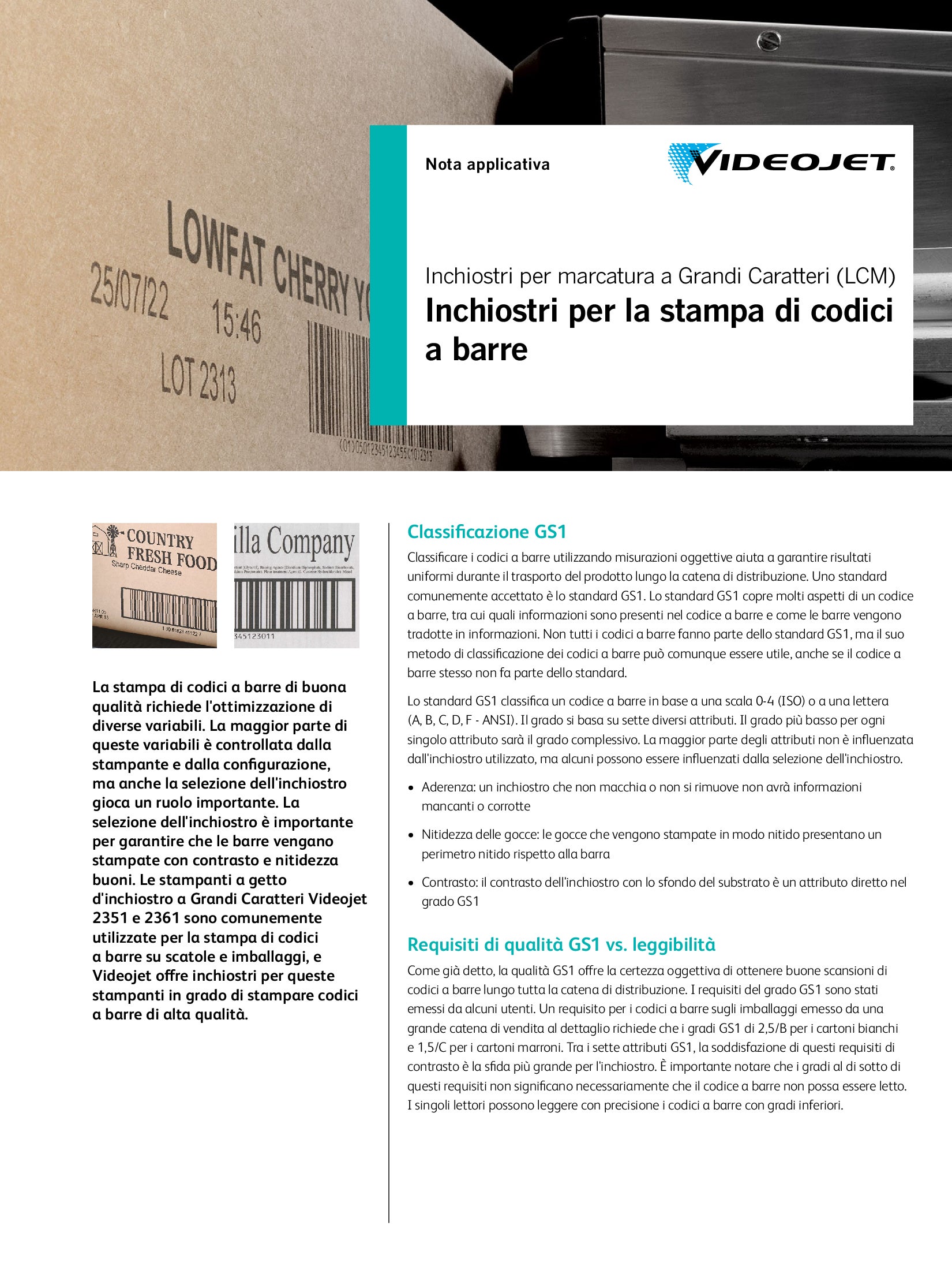 Gli inchiostri d’uso generico per le stampanti a Getto d’Inchiostro per Grandi Caratteri garantiscono una buona acutezza dei bordi, ideale per i substrati porosi.
