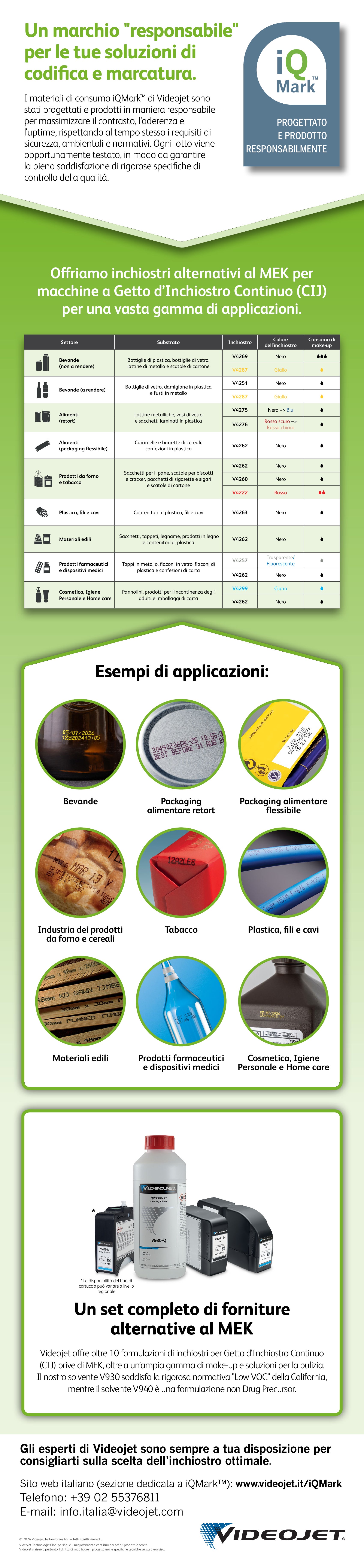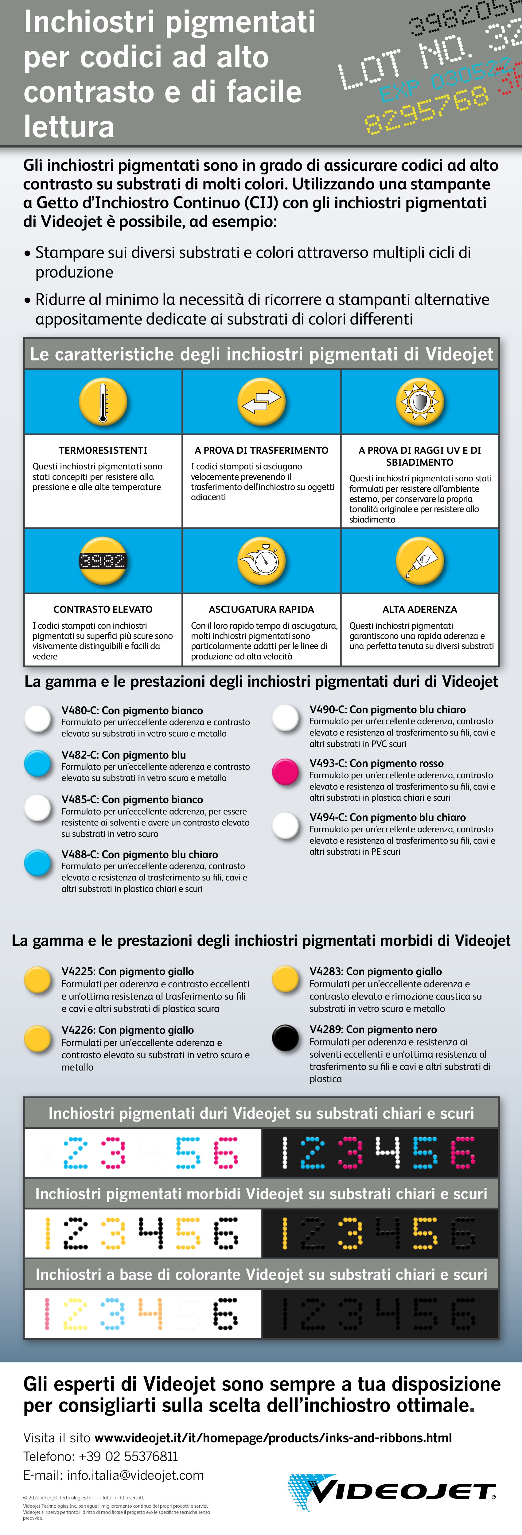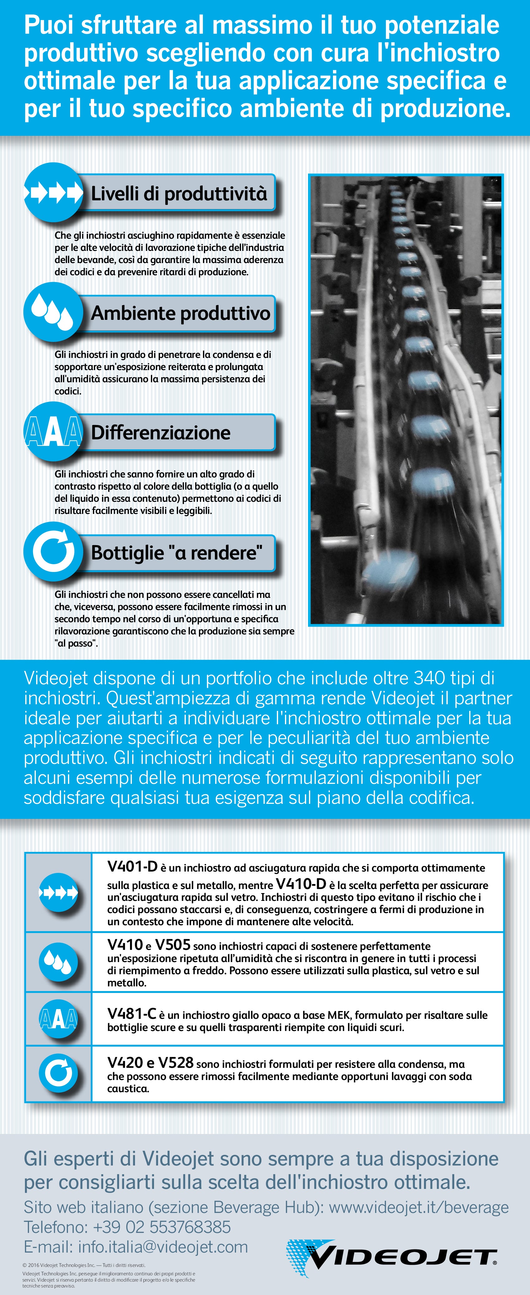 Gli inchiostri Videojet soddisfano le specifiche esigenze produttive dei clienti, grazie anche all’impiego di inchiostri speciali (quali quelli resistenti agli oli, al calore e ai solventi).