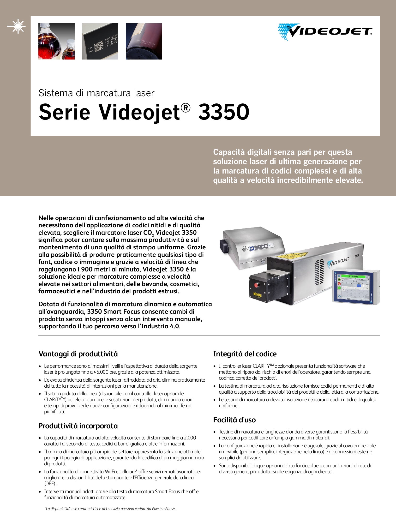 - Videojet 3350 è una soluzione connessa con una flessibilità di livello superiore, progettata per cambi di prodotto automatizzati senza interruzioni