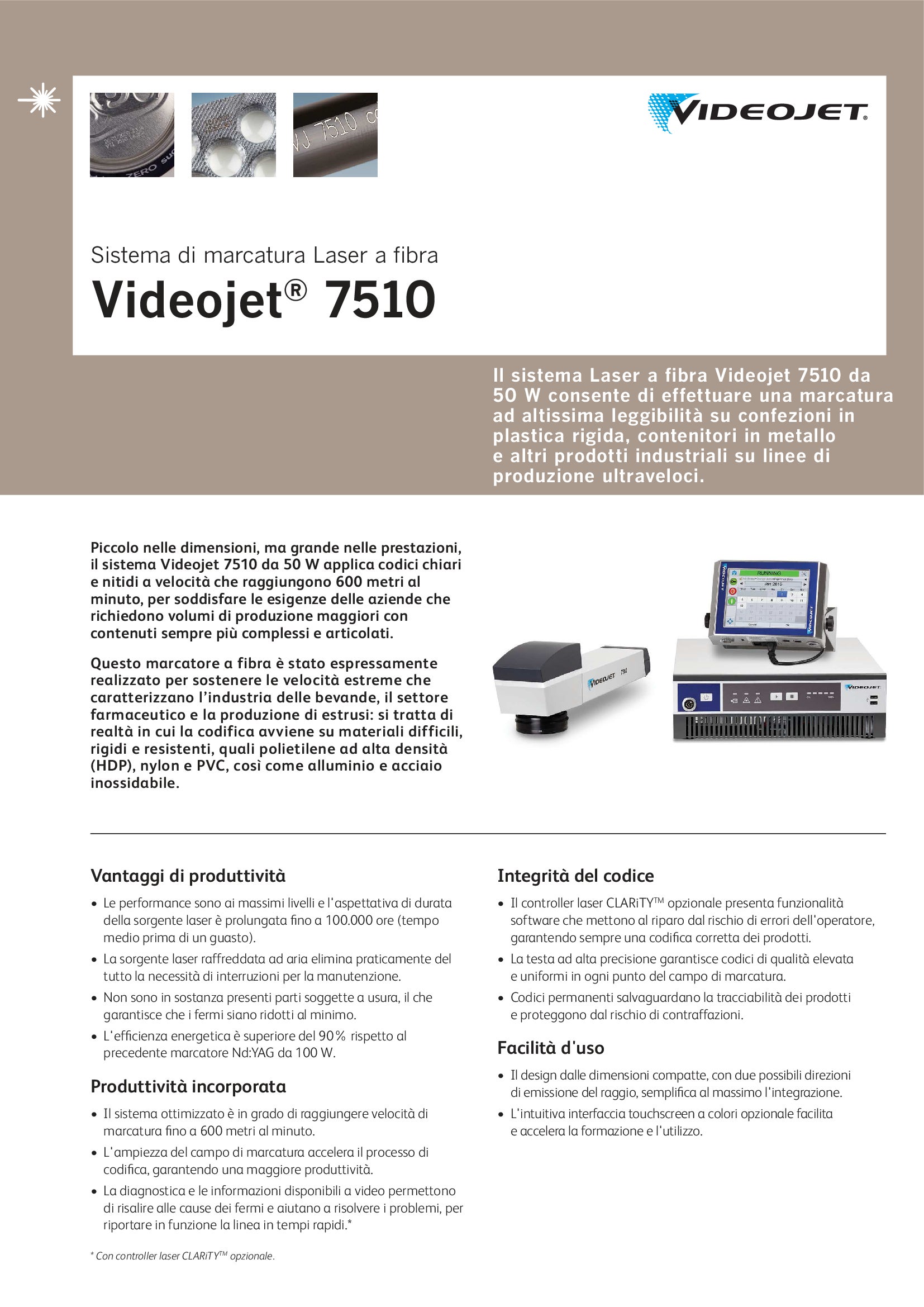 - Il software per l’integrità del codice (Code Assurance) all’interno del controller laser CLARiTY riduce il rischio di errori dell’operatore, assicurando sempre una codifica corretta dei prodotti.