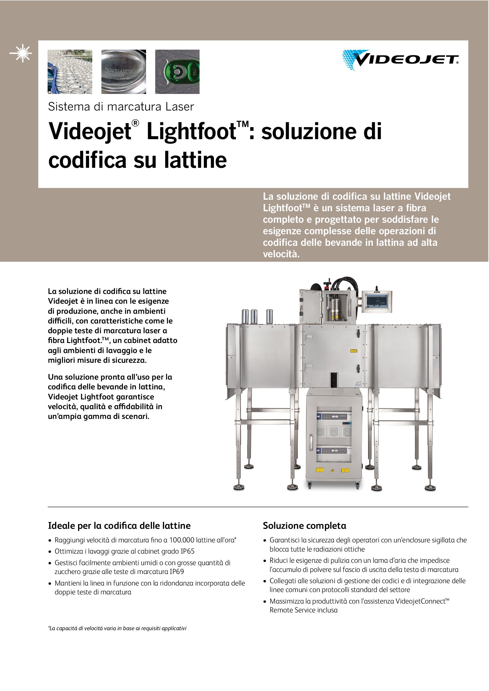 | Specifiche | Videojet Lightfoot™: soluzione di codifica su lattine |